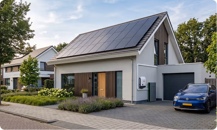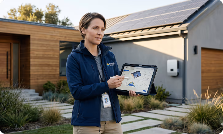 Sistemas solares completos para viviendas unifamiliares, con instalación, batería, backup y acompañamiento técnico y fiscal.